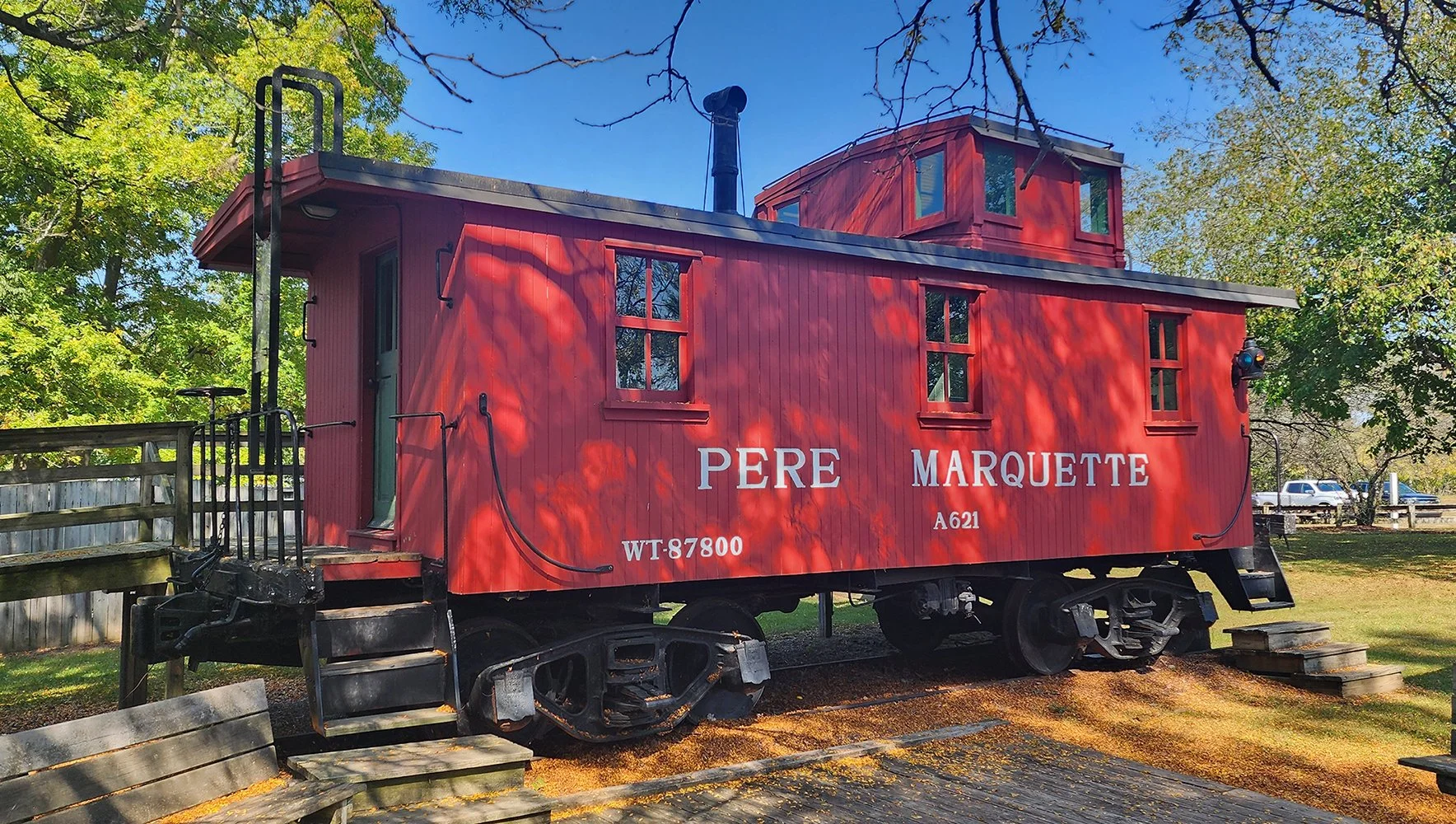 The retired #A909 Caboose Spring 2025 at the Steam Railroading Institute in Owosso, Michiagan