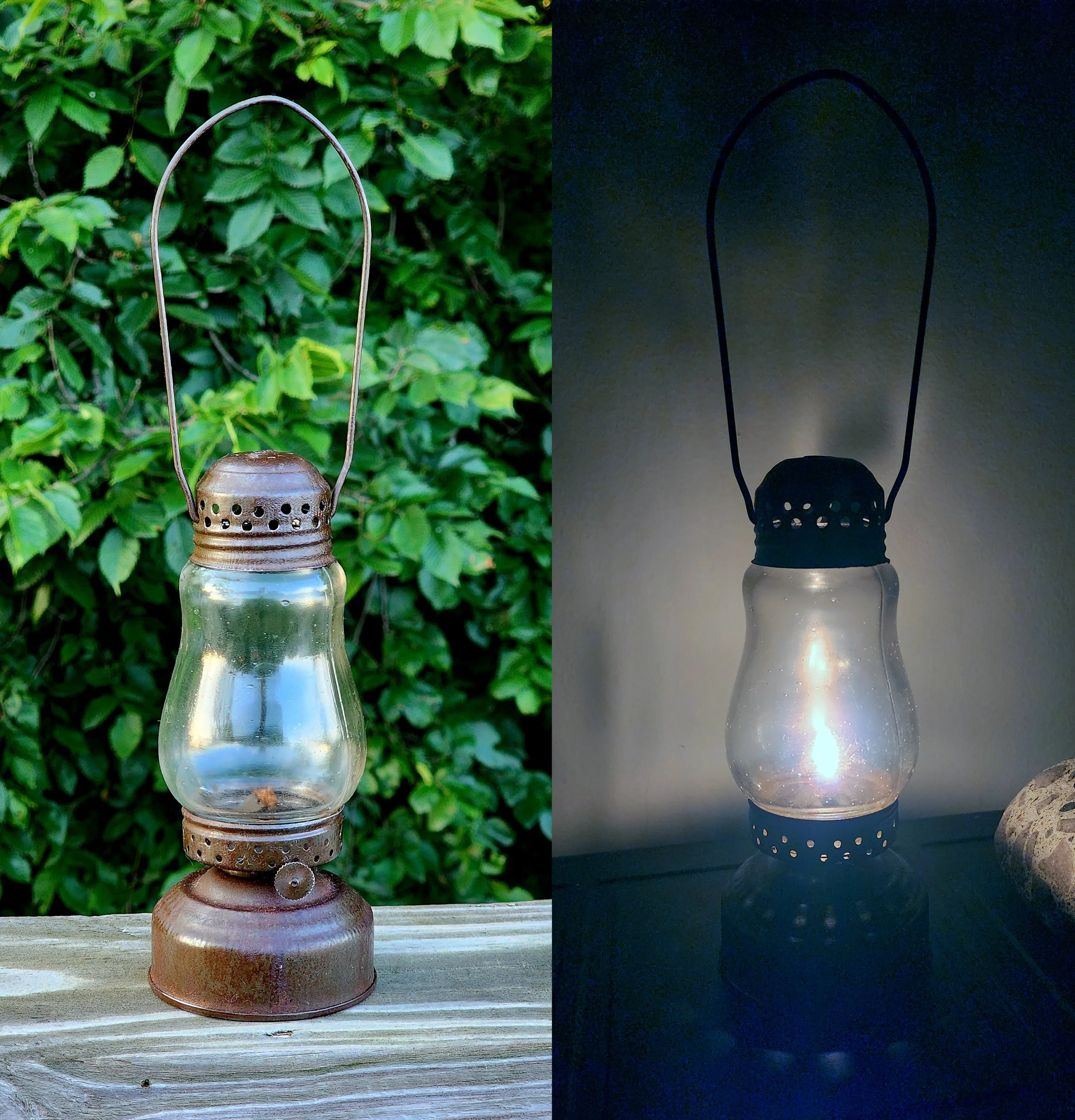 My favorite lanterns are the ones that tell a story and these two do exactly that. I cleaned them up, but I didn't wash away the story. They are preserved rather than restored. (2) 1913 Reliables. The comfortable leather wrapped bails, to the holes drilled in the lid to warm their hands, the paint used to protect them from rust all tells a lot about the life on the rails in the early days. Lanterns were a very important tool back in the day, every slight modification had its purpose. Now, they are works of art, filled with stories and history.